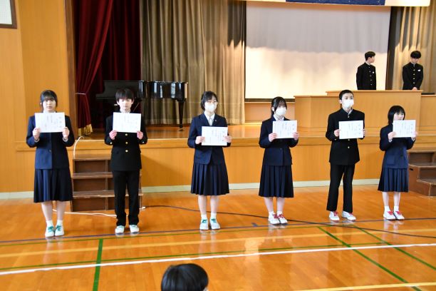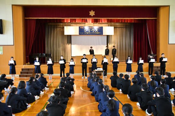 先月行われた生徒会三役選挙で当選した生徒への任命式を行いました。