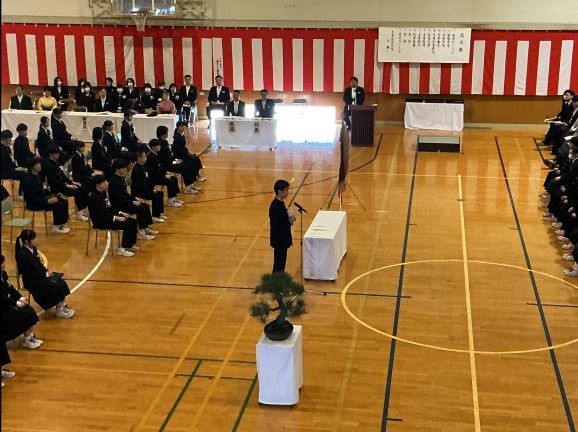 始業式で、学年代表の生徒が新年度の抱負を発表しました。