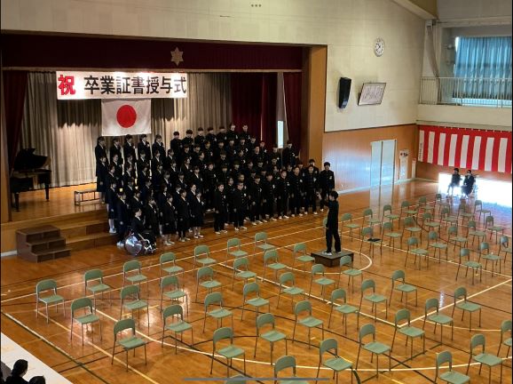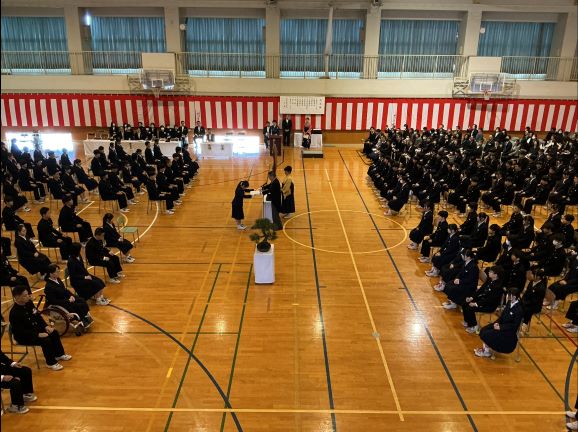 在校生、保護者、来賓の方々に祝福していただき、3年生75名が巣立っていきました。